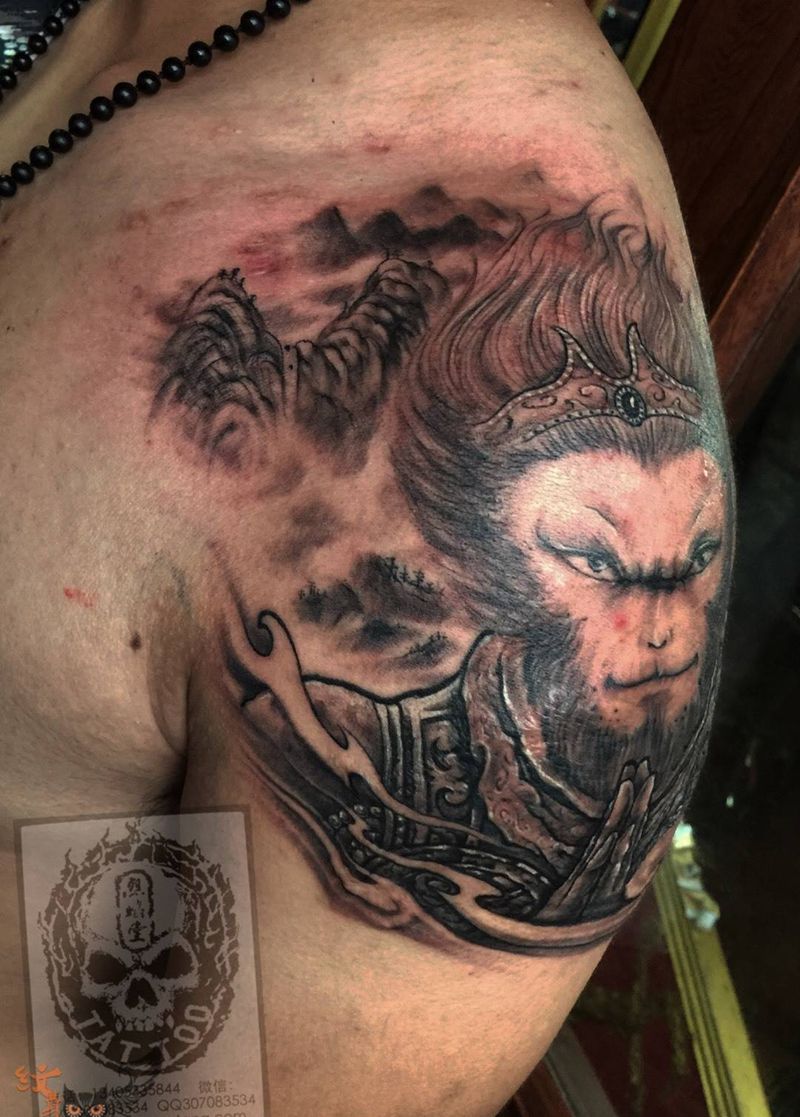 当前位置: 首页 >山东省淄博市纹身店-烈焰堂纹身纹身图案>善念佛心纹身图片_成品肩部传统原创宗教人物鬼神遮盖作品纹身图案