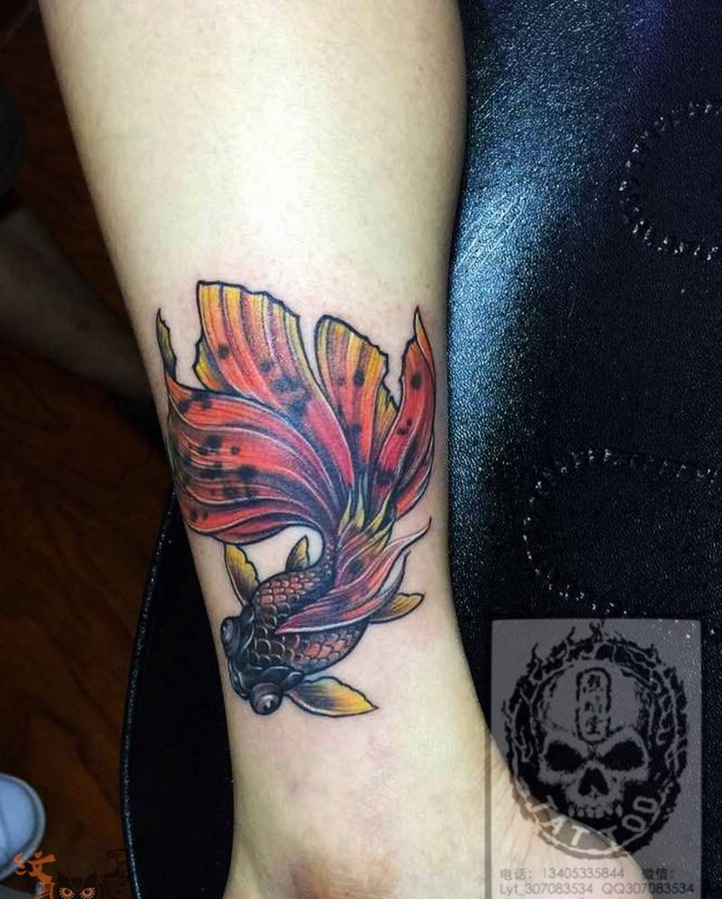 当前位置: 首页 >山东省淄博市纹身店-烈焰堂纹身纹身图案>金鱼纹身图片_成品腿部传统原创动物遮盖作品纹身图案