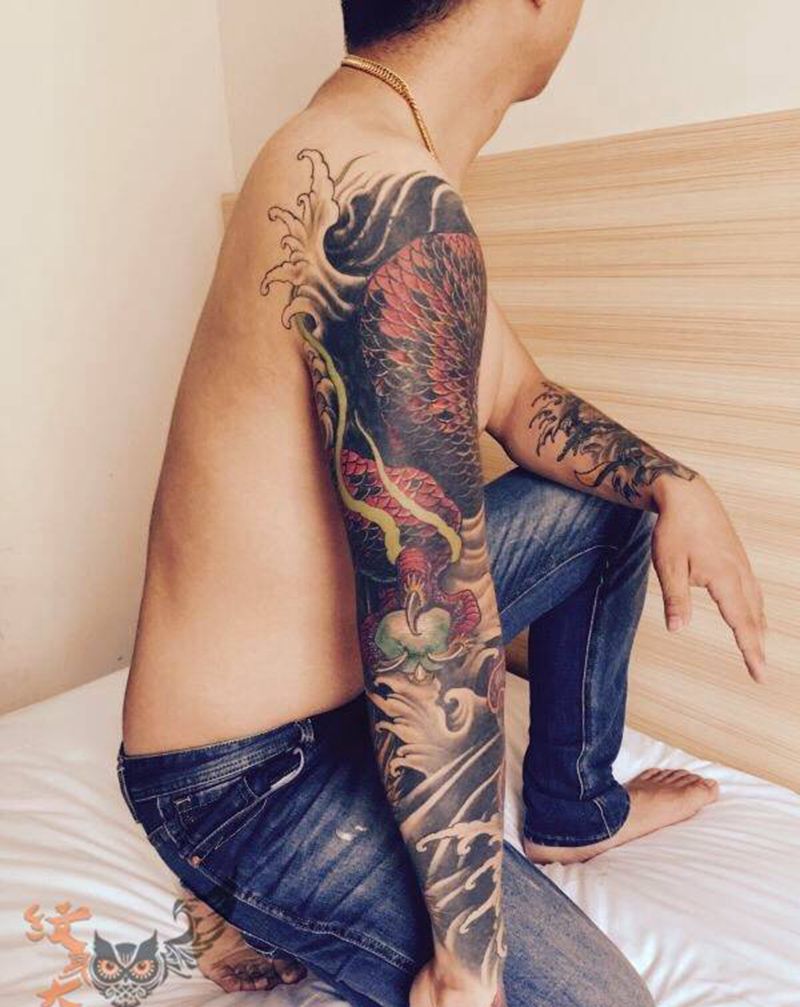 遮盖大龙纹身图片_成品肩部胸部手臂手部传统原创动物宗教遮盖作品纹身图案