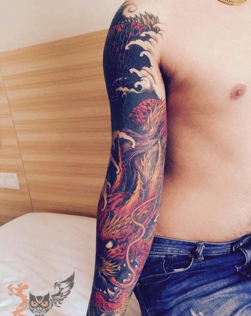遮盖大龙纹身图片_成品肩部胸部手臂手部传统原创动物宗教遮盖作品纹身图案