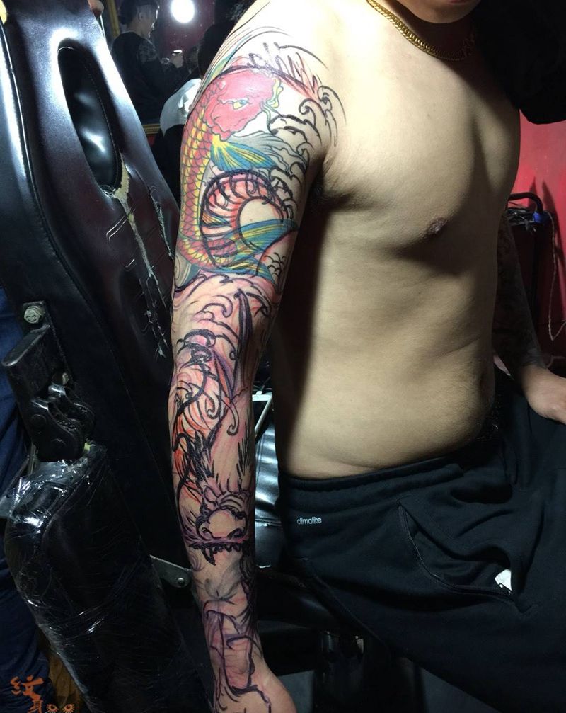 遮盖大龙纹身图片_成品肩部胸部手臂手部传统原创动物宗教遮盖作品纹身图案