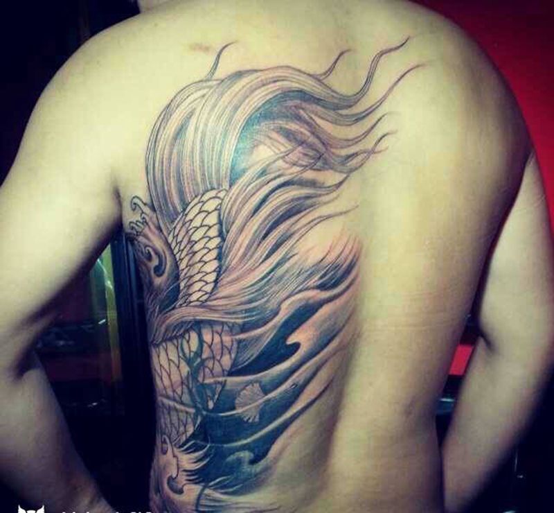 当前位置: 首页 >山东省淄博市纹身店-烈焰堂纹身纹身图案>龙凤锦鲤纹身图片_成品背部腰部传统动物原创神兽遮盖作品纹身图案