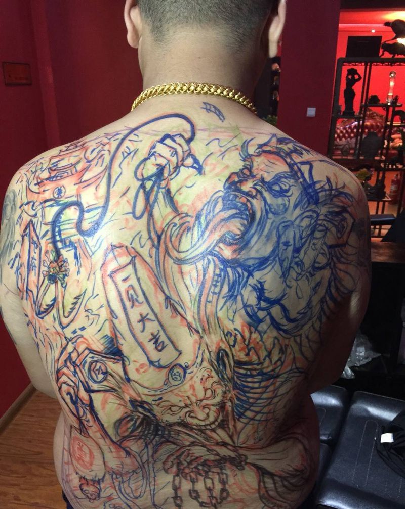 当前位置: 首页 >山东省淄博市纹身店-烈焰堂纹身纹身图案>设计黑白无常纹身图片_手稿背部传统原创鬼神人物宗教纹身图案