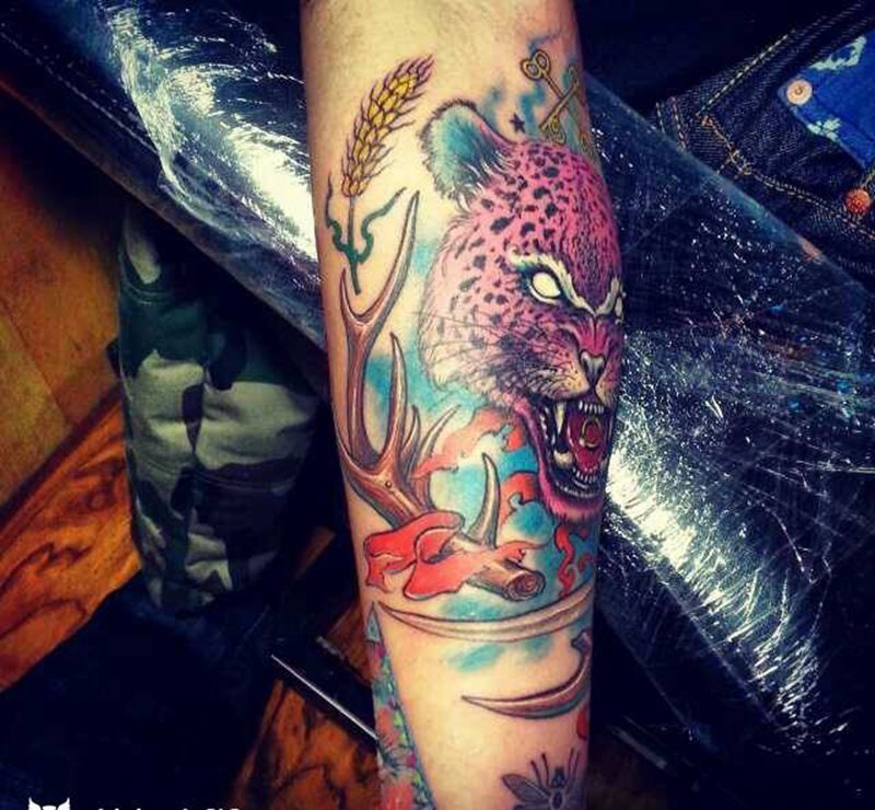 骚粉豹纹身图片_成品手臂欧美动物原创纹身图案