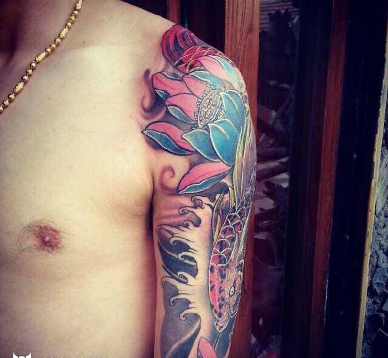 锦鲤纹身图片_成品肩部遮盖作品神兽动物原创纹身图案