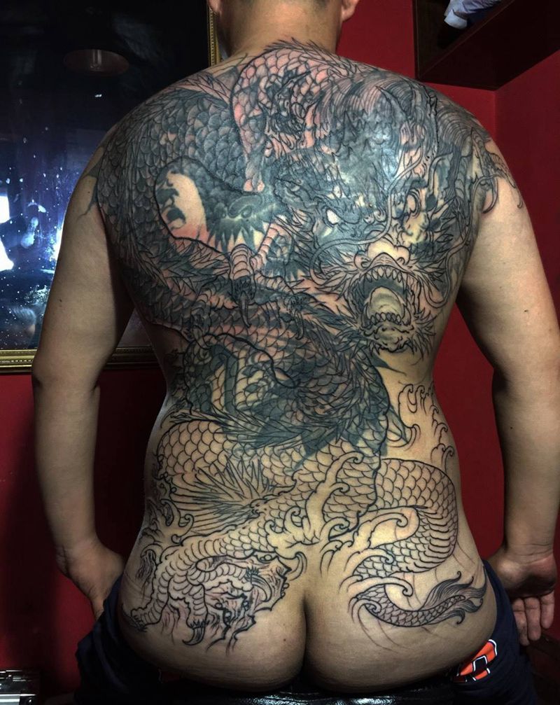 遮盖 大龙纹身图片_背部传统遮盖作品神兽动物原创纹身图案
