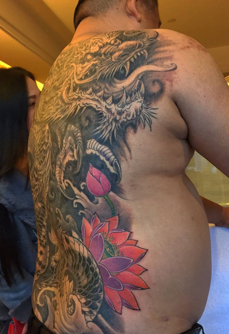 遮盖大龙纹身图片_背部传统遮盖作品神兽修改原创动物纹身图案