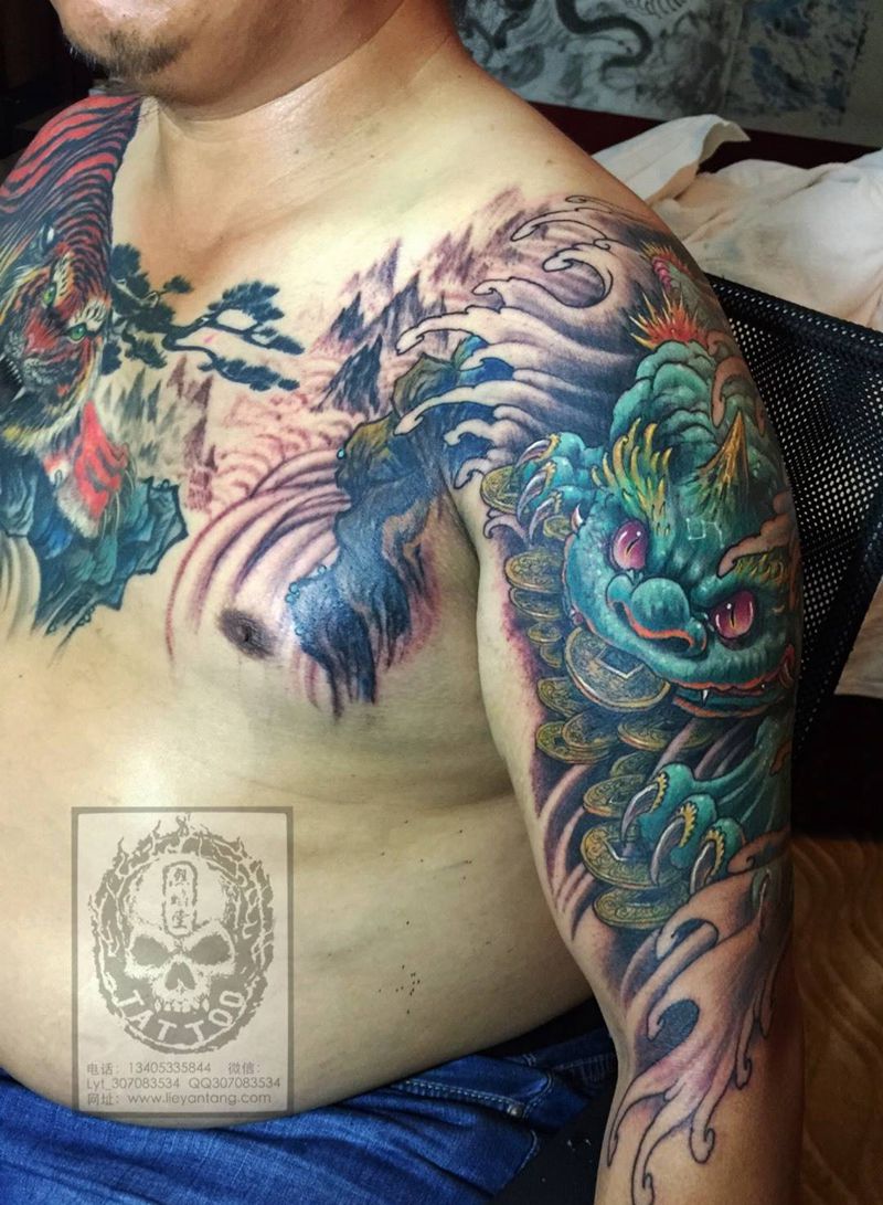 当前位置: 首页 >山东省淄博市纹身店-烈焰堂纹身纹身图案>招财金蟾纹身图片_成品肩部传统动物原创神兽纹身图案