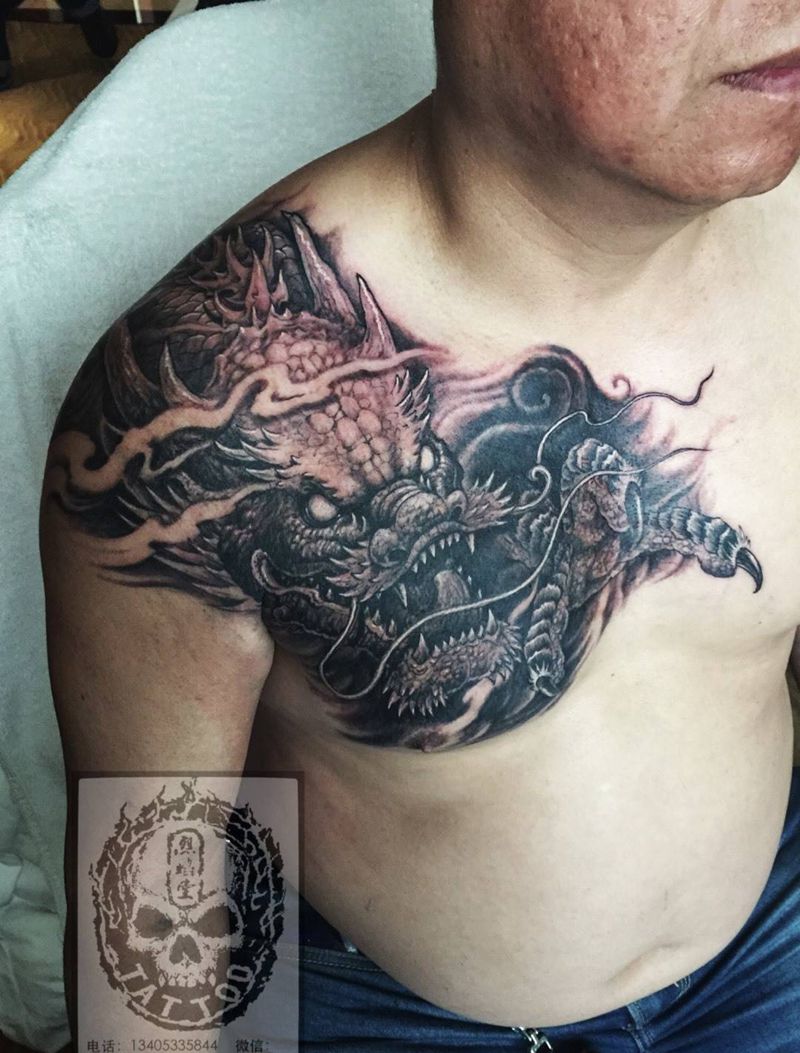 当前位置: 首页 >山东省淄博市纹身店-烈焰堂纹身纹身图案>大龙纹身图片_成品胸部传统神兽原创动物纹身图案