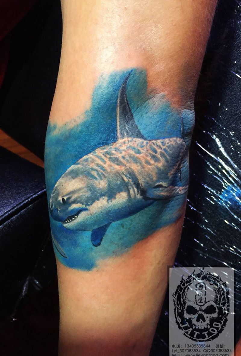 鲨鱼纹身图片_成品手臂欧美原创动物纹身图案