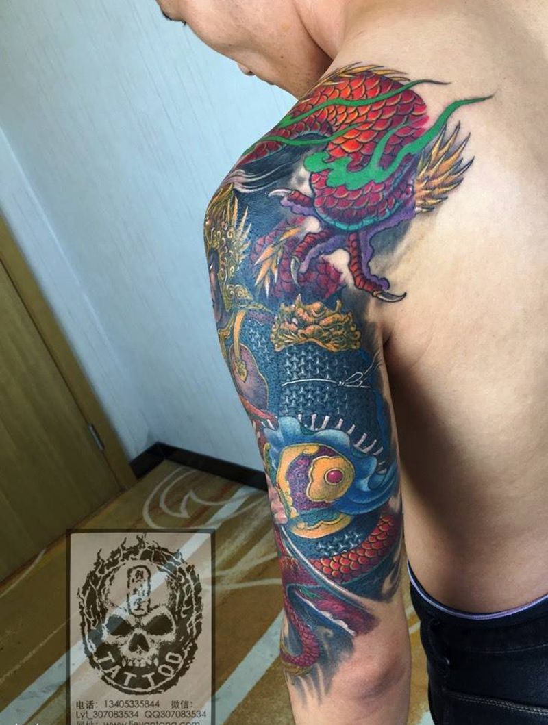 赤龙赵云纹身图片_成品胸部手臂传统人物动物神兽纹身图案
