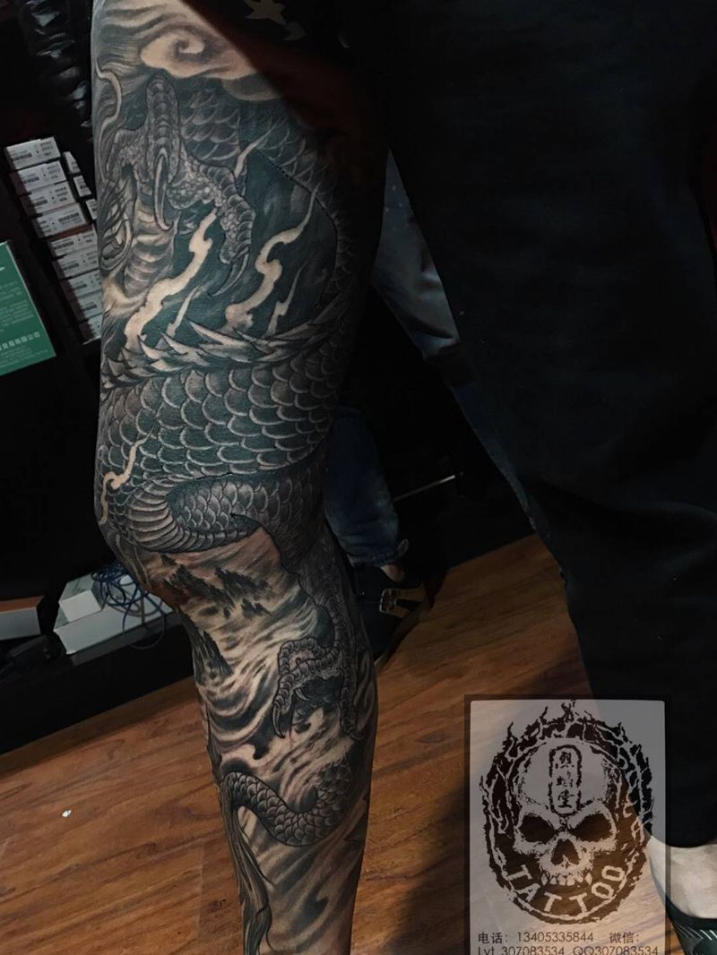 龙临天下 未完成纹身图片_腿部传统神兽动物纹身图案
