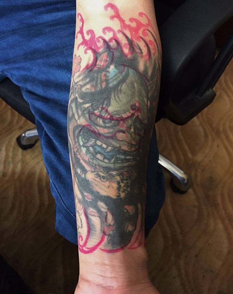 当前位置: 首页 >山东省淄博市纹身店-烈焰堂纹身纹身图案>修改小臂纹身图片_成品手臂传统修改遮盖作品人物鬼神纹身图案