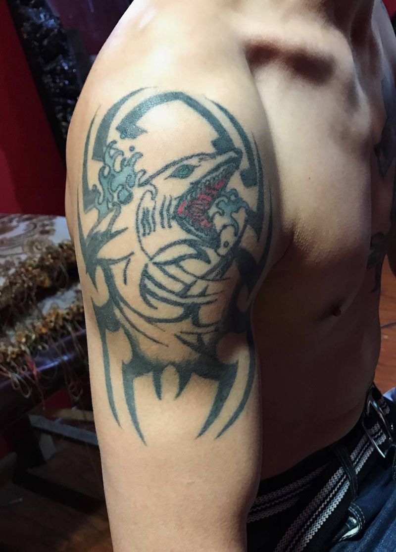 • 纹身吧推荐的披肩图腾半胛纹身图案作品展示