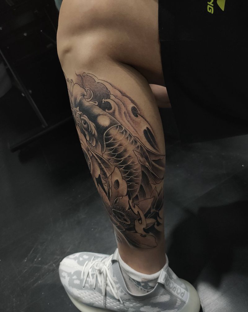 当前位置: 首页 >山东省淄博市纹身店-匠魂刺青纹身图案>小腿鲤鱼!纹身图片_腿部新传统纹身图案