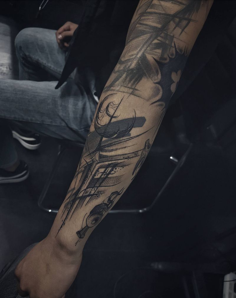 暗黑风拼接纹身图片_手臂暗黑风纹身图案