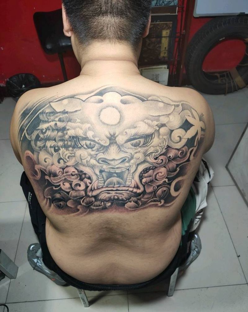当前位置: 首页 >山东省淄博市纹身店-匠魂刺青纹身图案>唐狮遮盖!纹身图片_背部新传统纹身图案