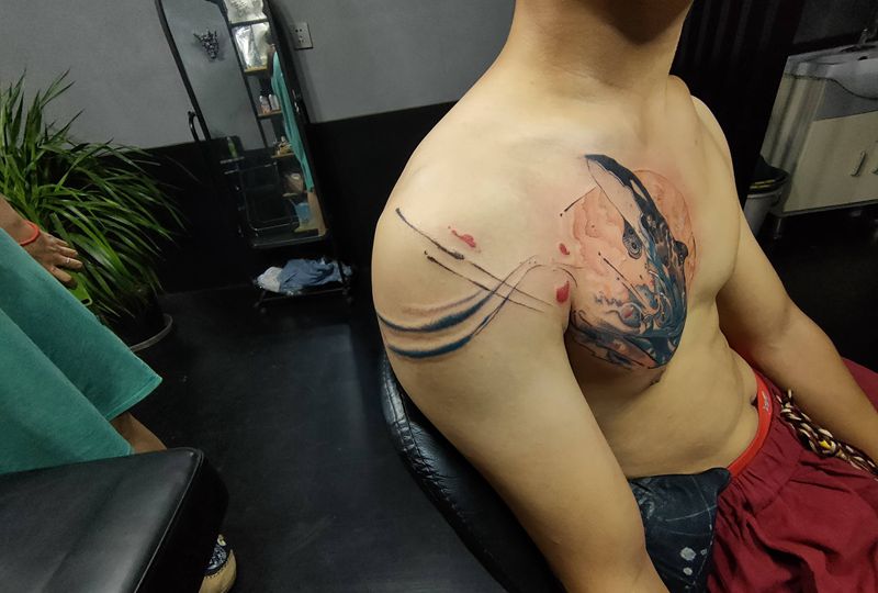 • 纹身吧推荐的披肩图腾半胛纹身图案作品展示