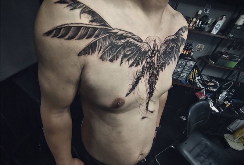 • 男性大花胸_42张优秀的男性大花胸纹身图案图片