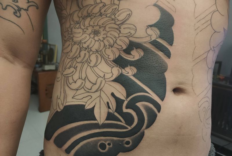当前位置: 首页 >山东省淄博市纹身店-匠魂刺青纹身图案>日式板雾纹身图片_腹部老传统纹身图案