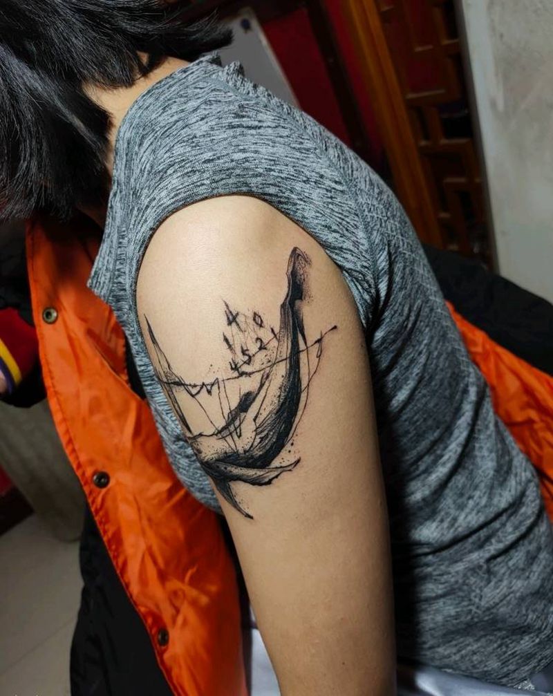 鲸鱼纹身图片_手臂几何点刺纹身图案