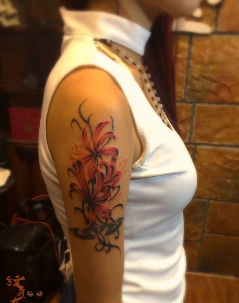 彼岸花纹身图片_成品手臂传统植物纹身图案