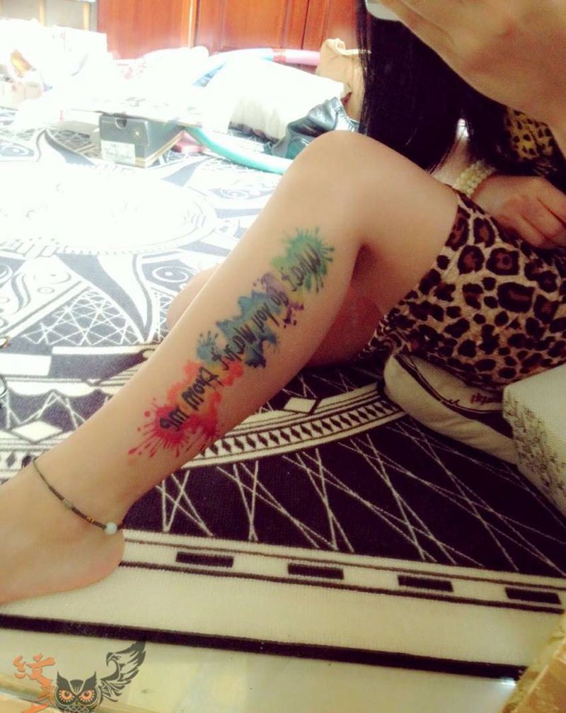 水墨字母纹身图片_成品腿部欧美字符纹身图案