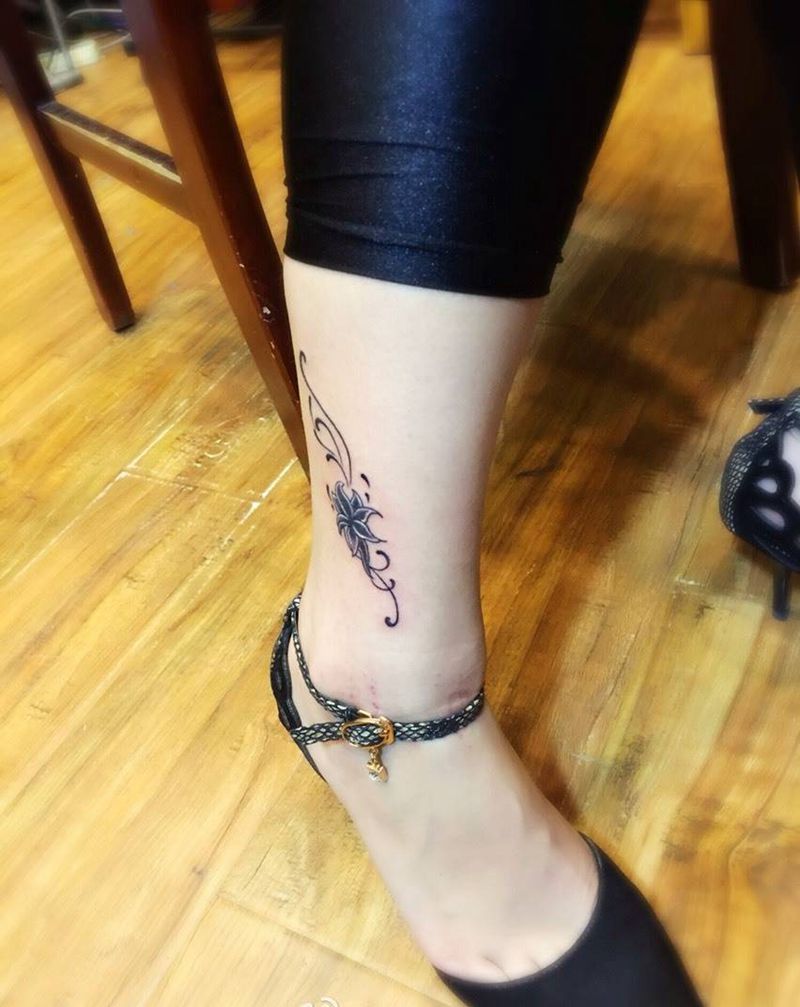 美女脚踝图腾花❀纹身图片_成品脚部欧美图腾植物纹身图案