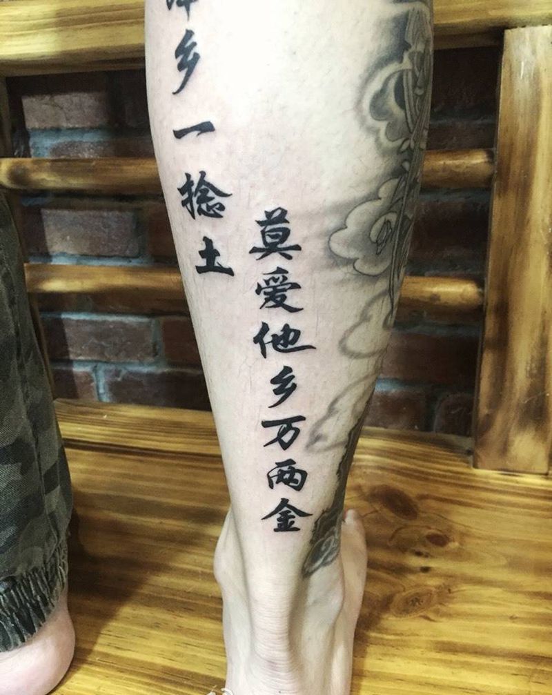 书法作品纹身图片_成品腿部字符原创纹身图案