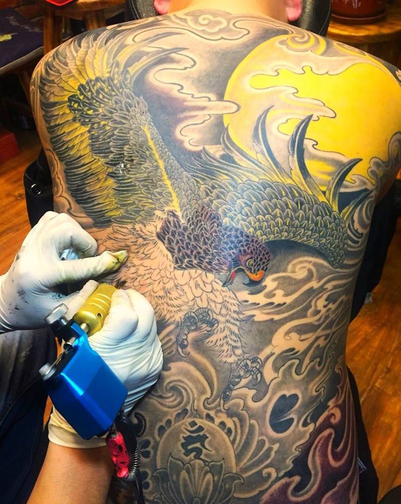 当前位置: 首页 >山东省淄博市纹身店-金艺堂纹身纹身图案>雄鹰纹身图片_成品背部传统动物原创纹身图案
