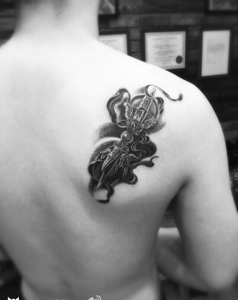 • 纹身吧推荐的披肩图腾半胛纹身图案作品展示