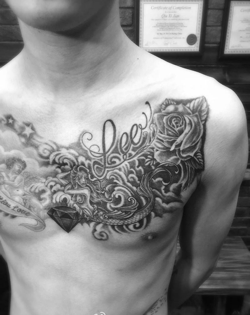 • 男性大花胸_42张优秀的男性大花胸纹身图案图片