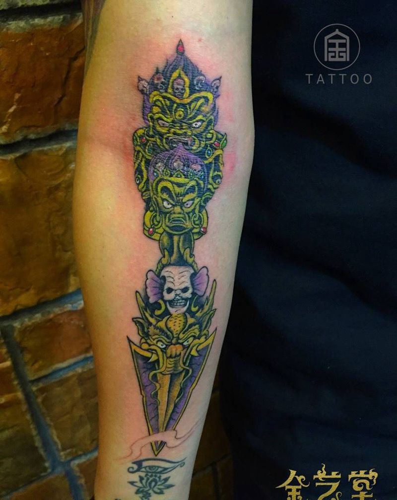 降魔杵纹身图片_成品手臂传统宗教纹身图案
