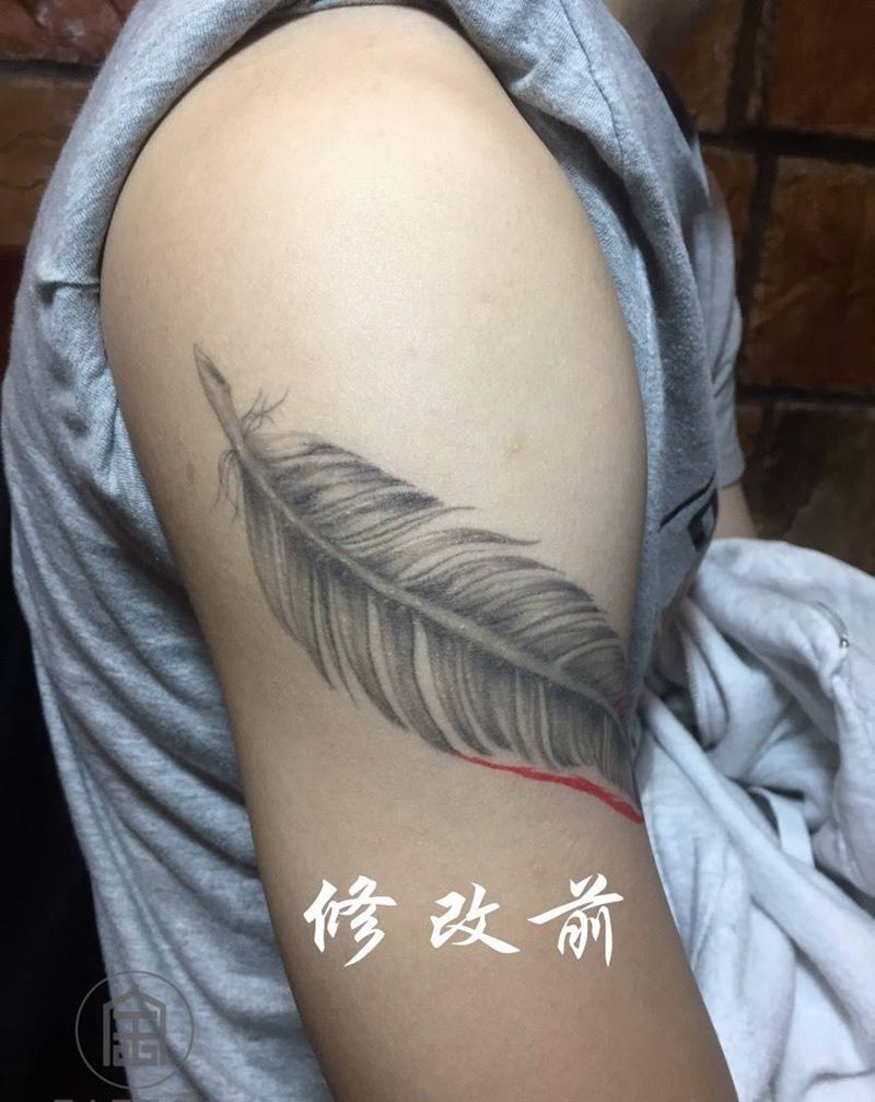 羽毛修改纹身图片_成品手臂欧美大臂羽毛纹身图案