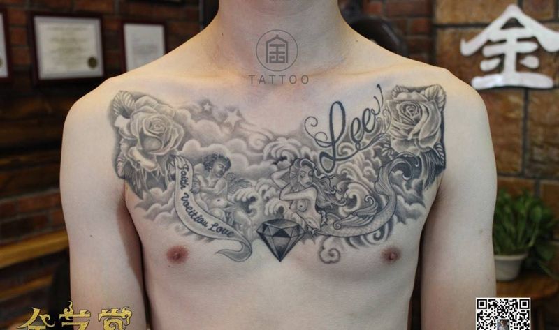 • 男性大花胸_42张优秀的男性大花胸纹身图案图片