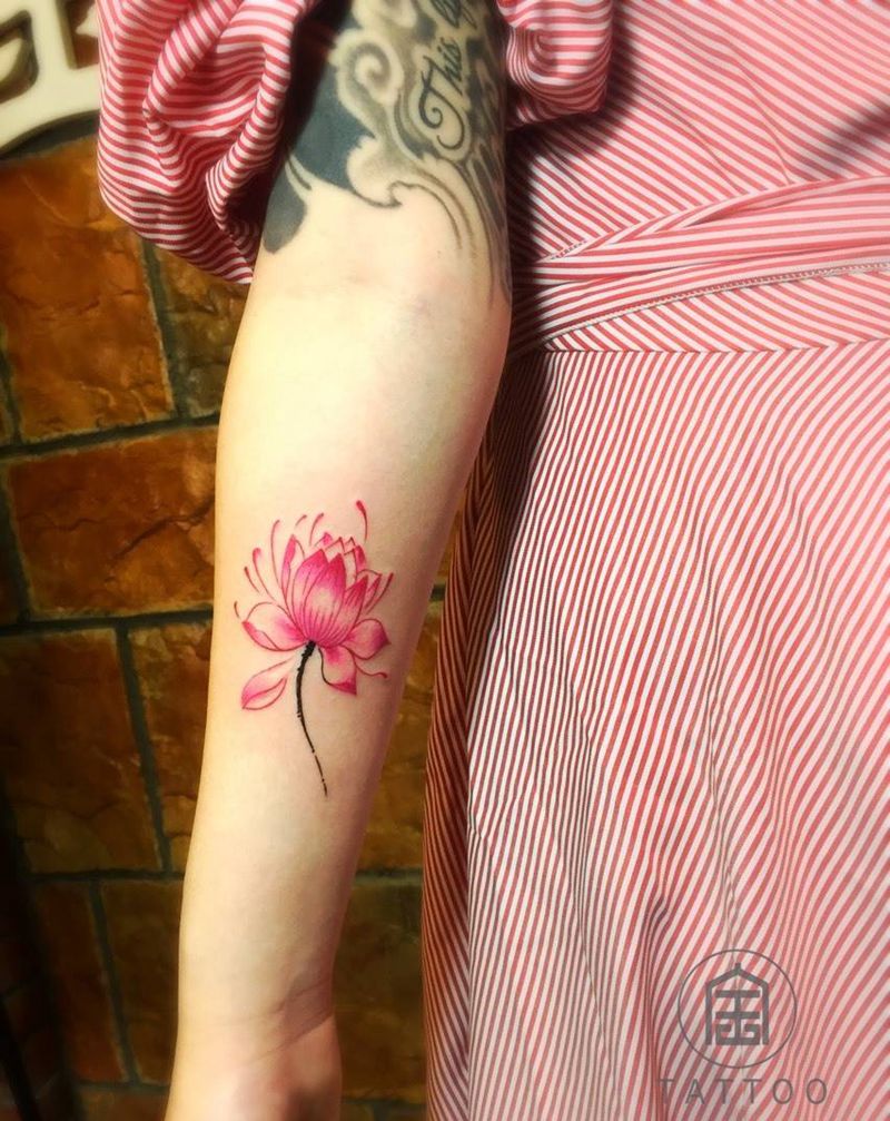 水彩莲花纹身图片_成品手臂传统植物莲花泼墨风格纹身图案