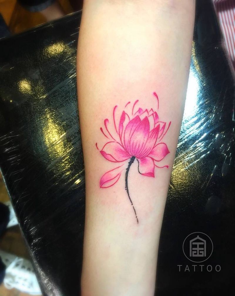 水彩莲花纹身图片_成品手臂传统植物莲花泼墨风格纹身图案
