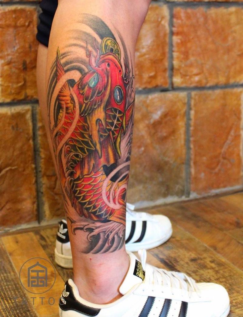 当前位置: 首页 >山东省淄博市纹身店-金艺堂纹身纹身图案>彩色龙鱼纹身图片_成品腿部传统鲤鱼纹身图案