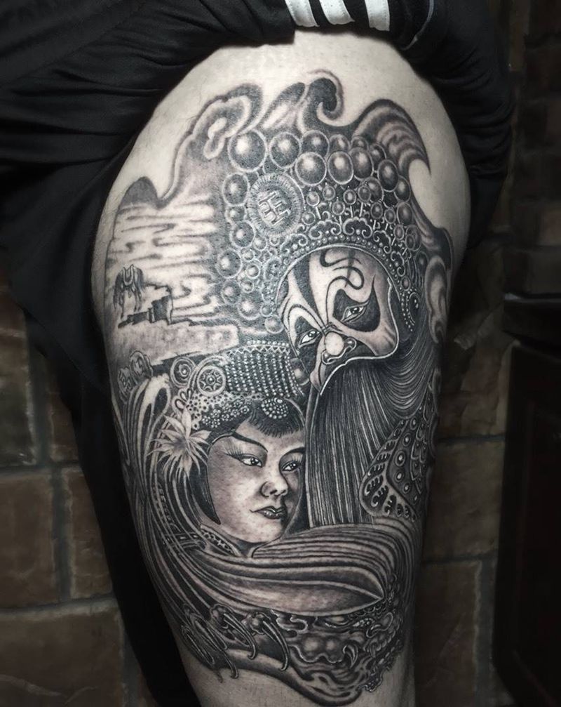 当前位置: 首页 >山东省淄博市纹身店-金艺堂纹身纹身图案>霸王别姬纹身图片_成品腿部传统习俗肖像写实人物纹身图案