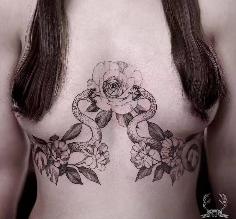 • 女性大花胸纹身_43张霸气漂亮的女性大花胸纹身图案作品