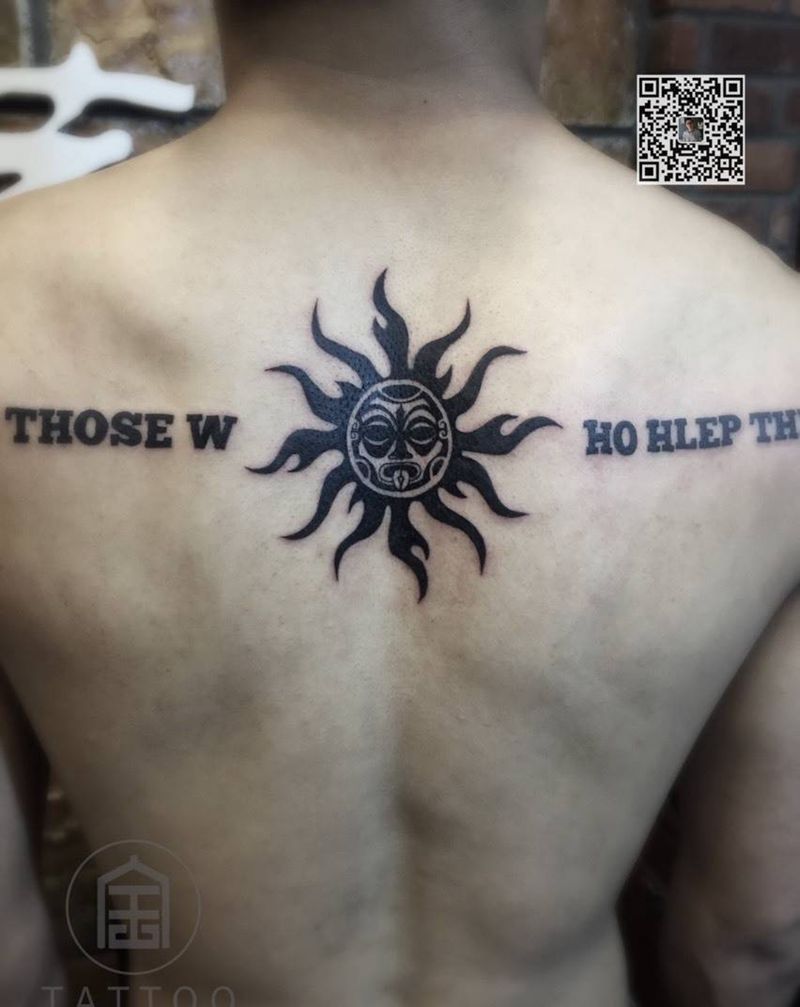 图腾太阳字母纹身图片_成品肩部背部欧美图腾字符纹身图案