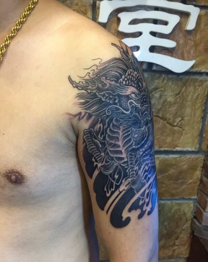 当前位置: 首页 >山东省淄博市纹身店-金艺堂纹身纹身图案>招财麒麟纹身图片_成品手臂传统大臂原创习俗纹身图案
