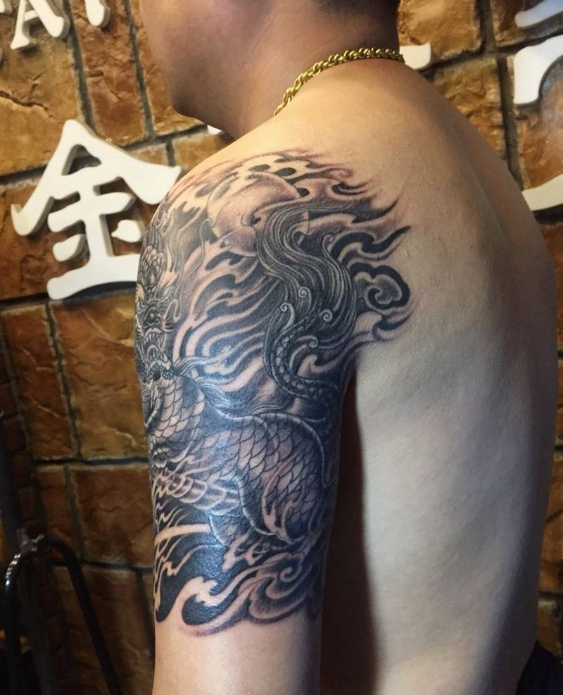 • T网红王老大花腿龙纹身图片_腿部新传统纹身图案