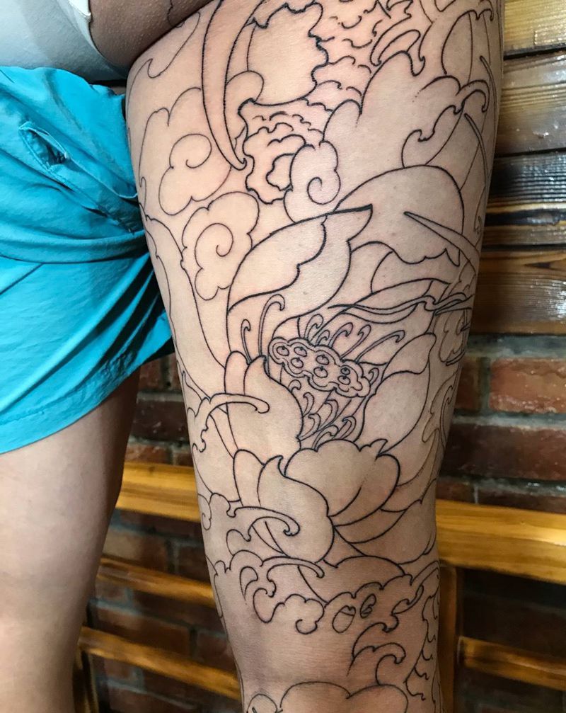 一组15张莲花纹身手
