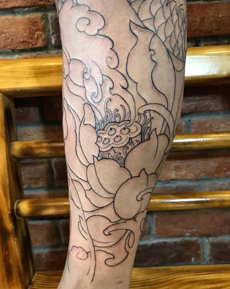 • T网红王老大花腿龙纹身图片_腿部新传统纹身图案