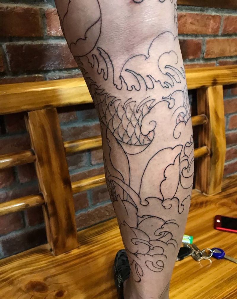 • T网红王老大花腿龙纹身图片_腿部新传统纹身图案