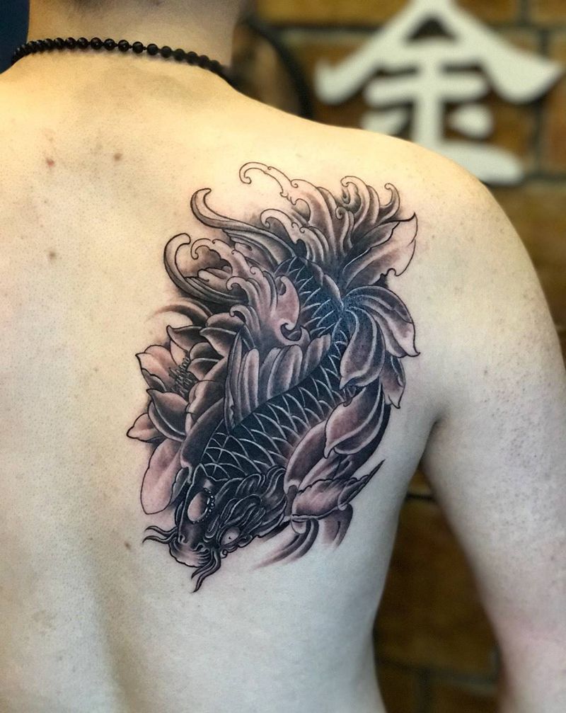 鲤鱼纹身图片_成品肩部传统鲤鱼原创纹身图案