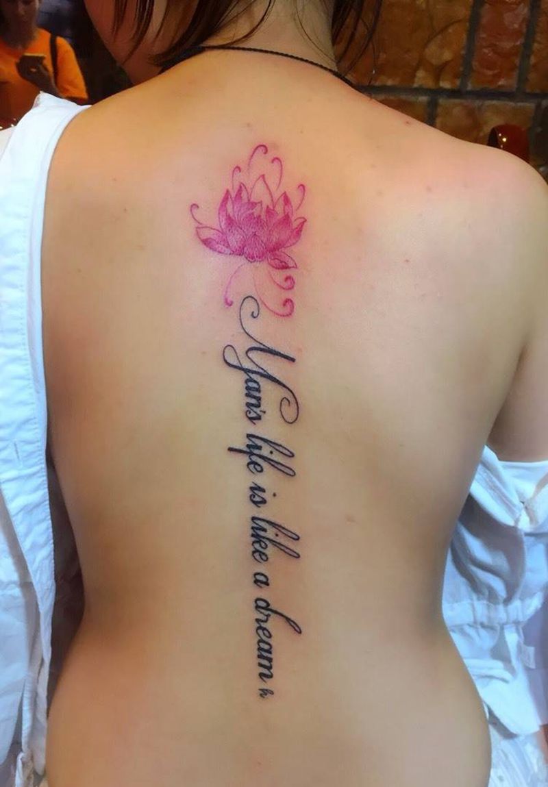 莲花字母纹身图片_成品背部传统字符花体纹身图案