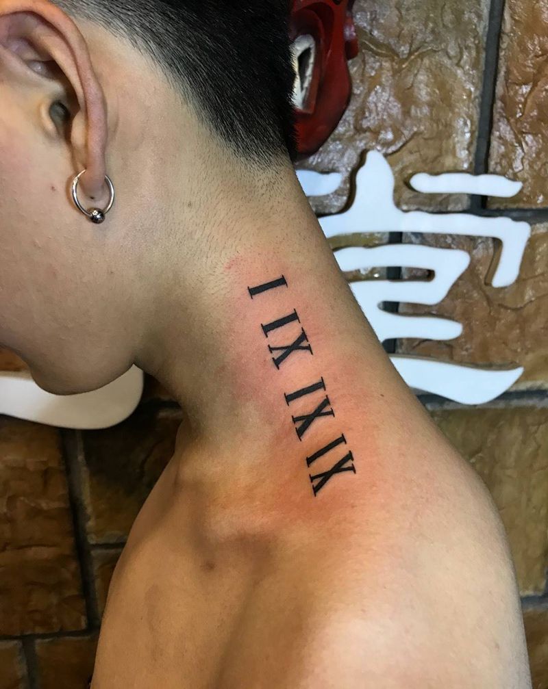 罗马数字纹身图片_成品颈部欧美字符纹身图案