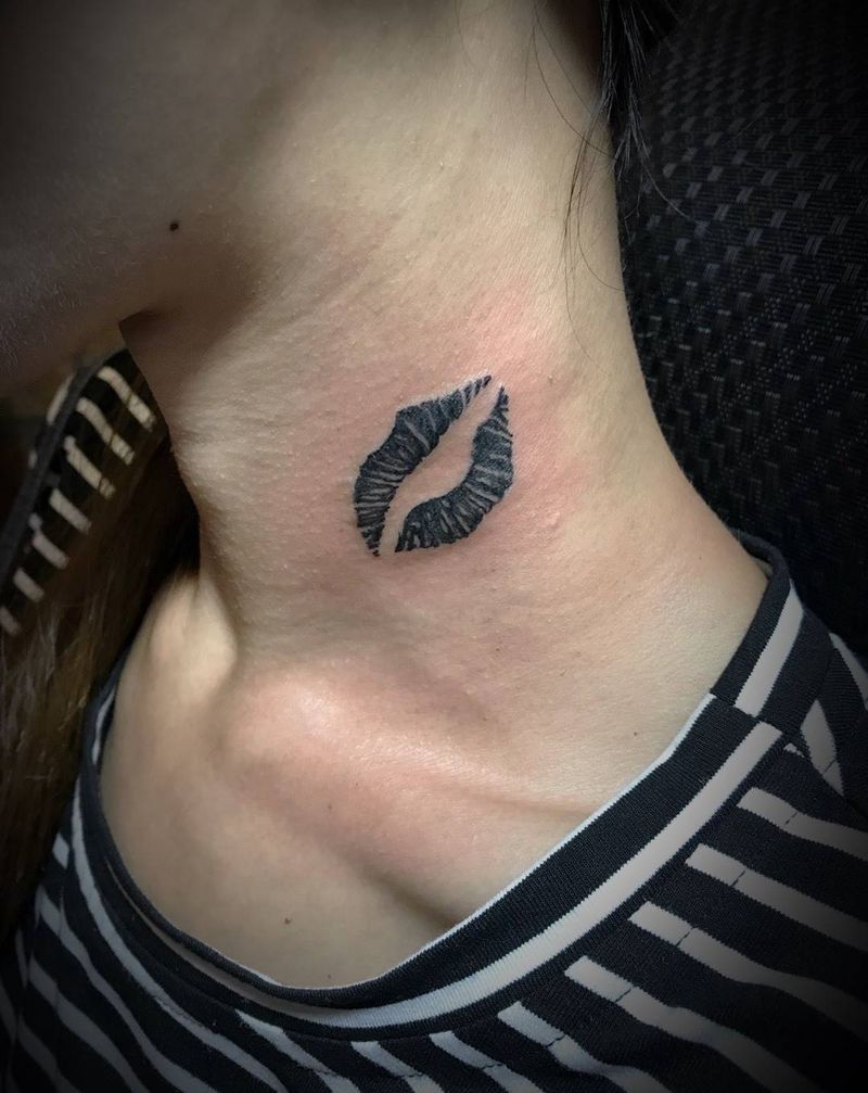 唇印纹身图片_成品颈部欧美图腾美女纹身图案